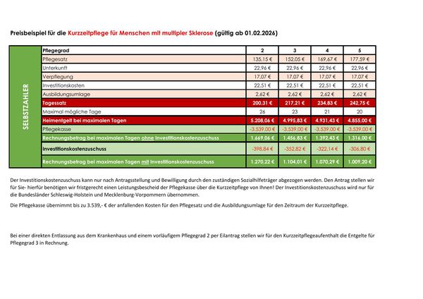 Kurzzeitpflege / Spezialpflege für Menschen mit Multipler Sklerose